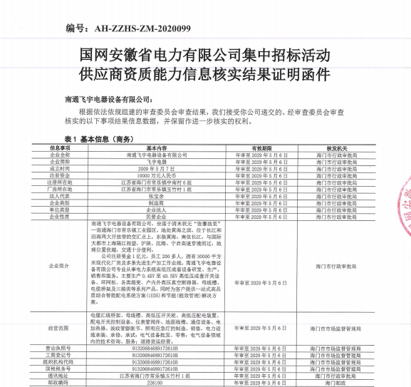 2020年6月10日, 我公司順利通過國網(wǎng)安徽省電力有限公司低壓開關(guān)柜的供應商資質(zhì)能力核實,獲得《供應商資質(zhì)能力核實證明》(簡稱“一紙證明”)。