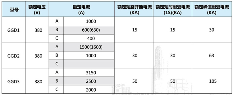 GGD型低壓成套開關(guān)設(shè)備按用途可分為受電柜、母線聯(lián)絡(luò)柜、饋電柜、電動(dòng)機(jī)控制柜、無(wú)功功率^嘗柜和照明配電柜等。該結(jié)構(gòu)具有分?jǐn)嗄芰Ω摺?dòng)熱穩(wěn)定性好、設(shè)計(jì)靈活、組合方便、系列性實(shí)用性強(qiáng)、結(jié)構(gòu)新穎、防護(hù)等級(jí)高等特點(diǎn)。